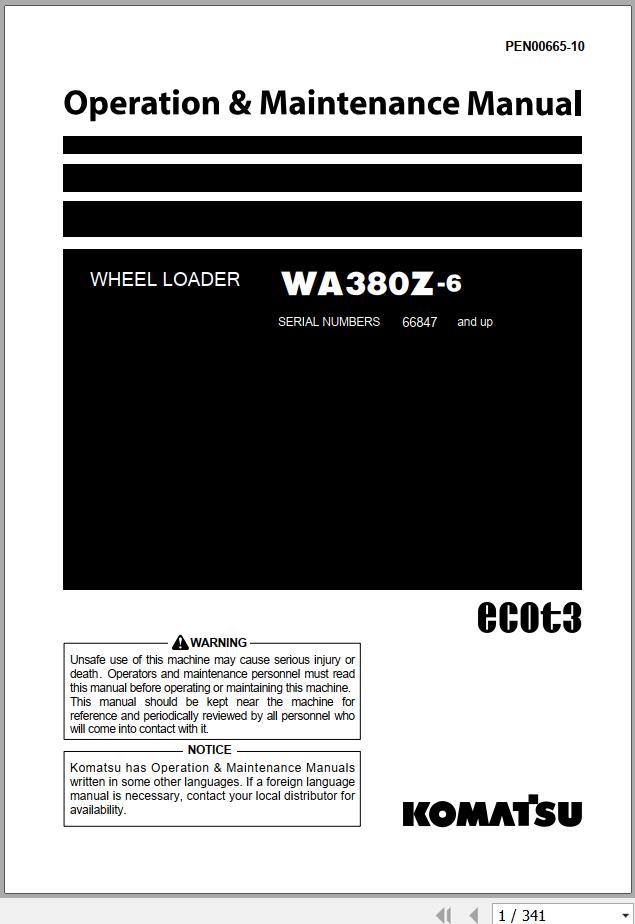 Komatsu WA380Z-6 Operation & Maintenance Manual PEN00665-10