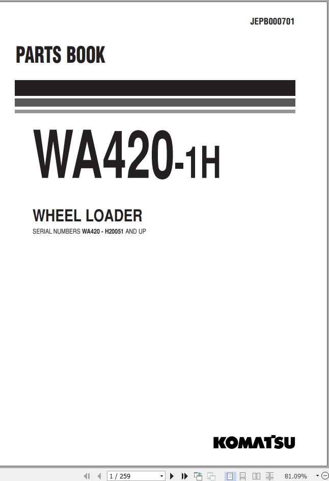 Komatsu WA420-1H Part Book JEPB000701
