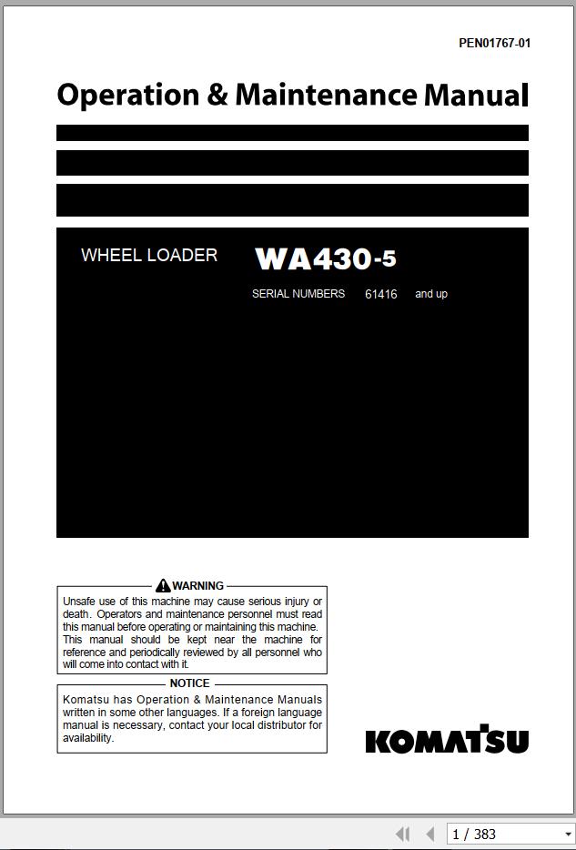 Komatsu WA430-5 Operation & Maintenance Manual PEN01767-01