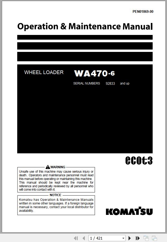 Komatsu WA470-6A Operation & Maintenance Manual PEN01869-00