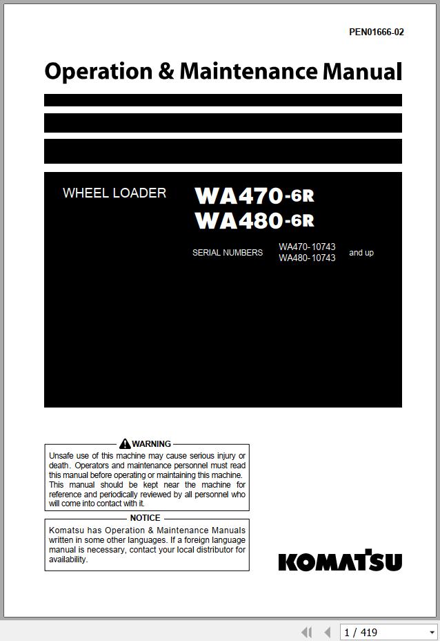 Komatsu WA470-6R WA480-6R Operation & Maintenance Manual PEN01666-02