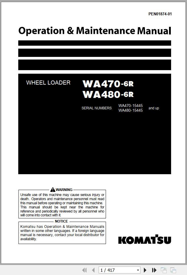 Komatsu WA470-6R WA480-6R Operation & Maintenance Manual PEN01874-01