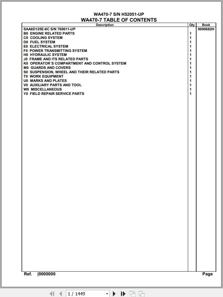 The Bookmarks of Komatsu WA470-7 H52051 Up Spare Parts Catalog: