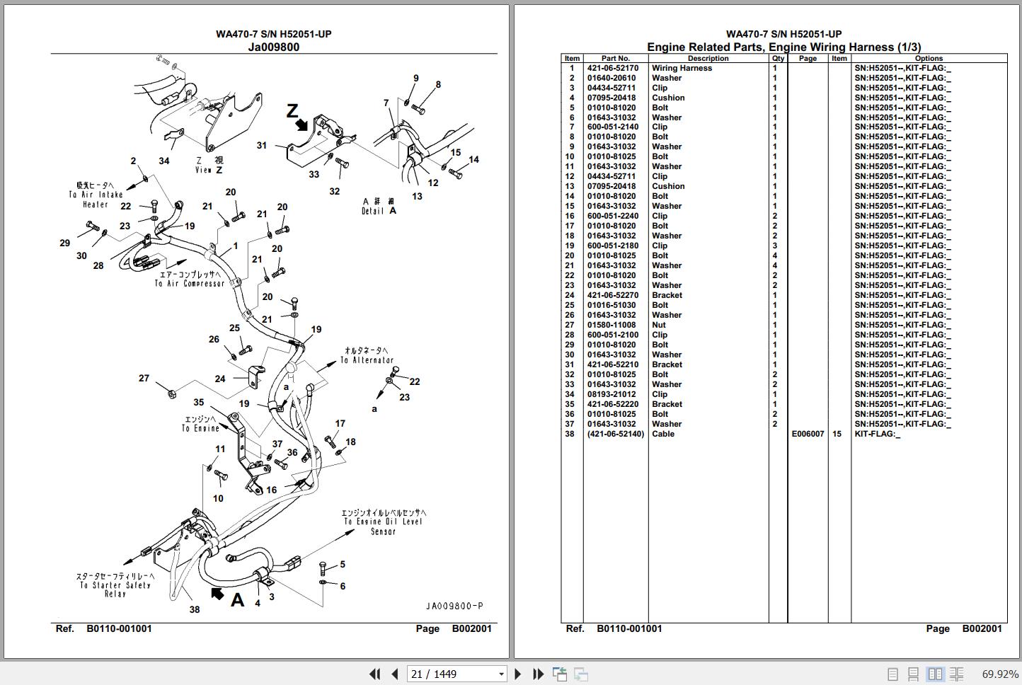 Komatsu WA470-7 H52051 Up Spare Parts Catalog