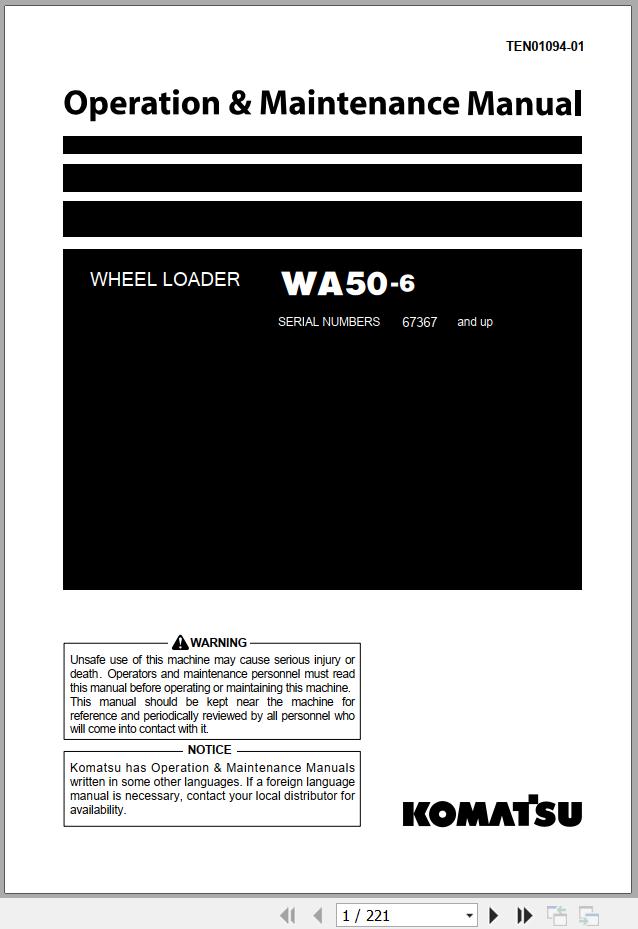 Komatsu WA50-6 Operation & Maintenance Manual TEN01094-01