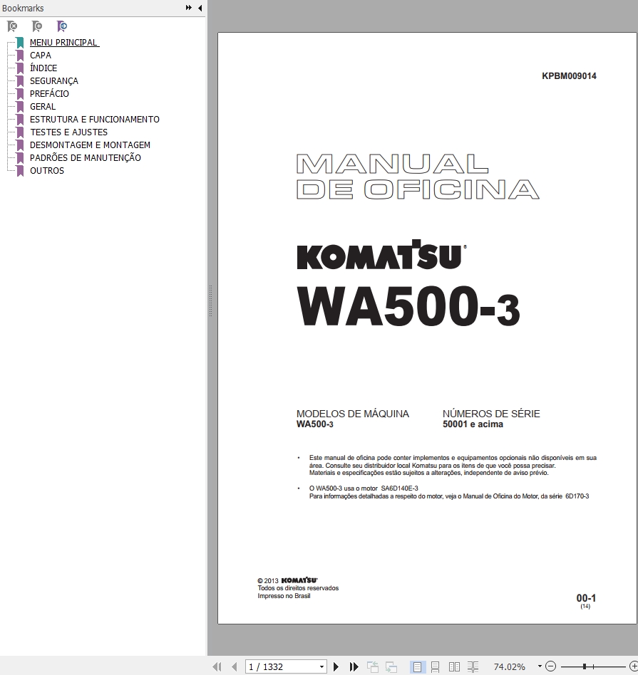The Bookmarks of Komatsu WA500-3 Carregadeira De Rodas Manual de Oficina: