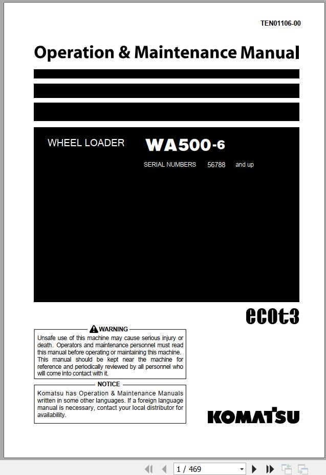 Komatsu WA500-6 Operation & Maintenance Manual TEN01106-00