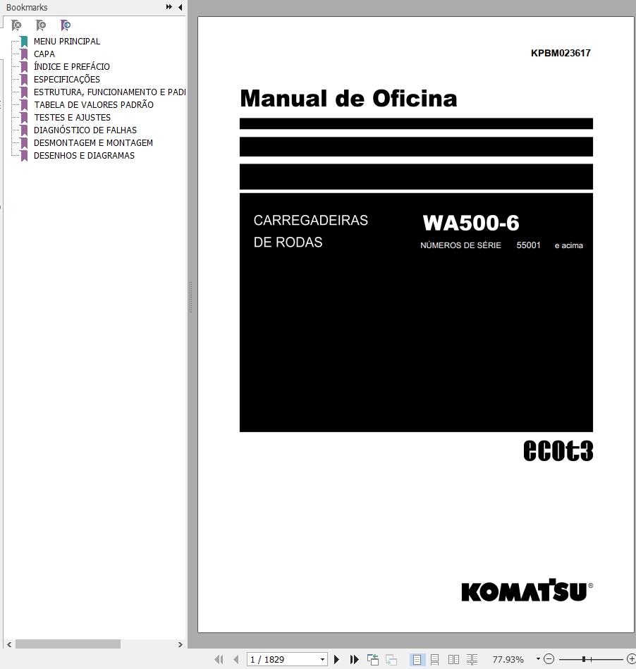 The Bookmarks of Komatsu WA500-6 Carregadeira De Rodas Manual de Oficina: