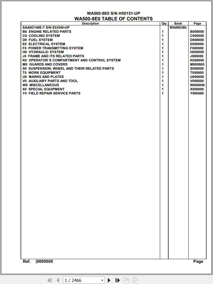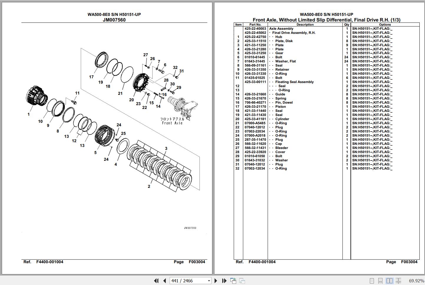 Komatsu WA500-8E0 H50151 Up Spare Parts Catalog