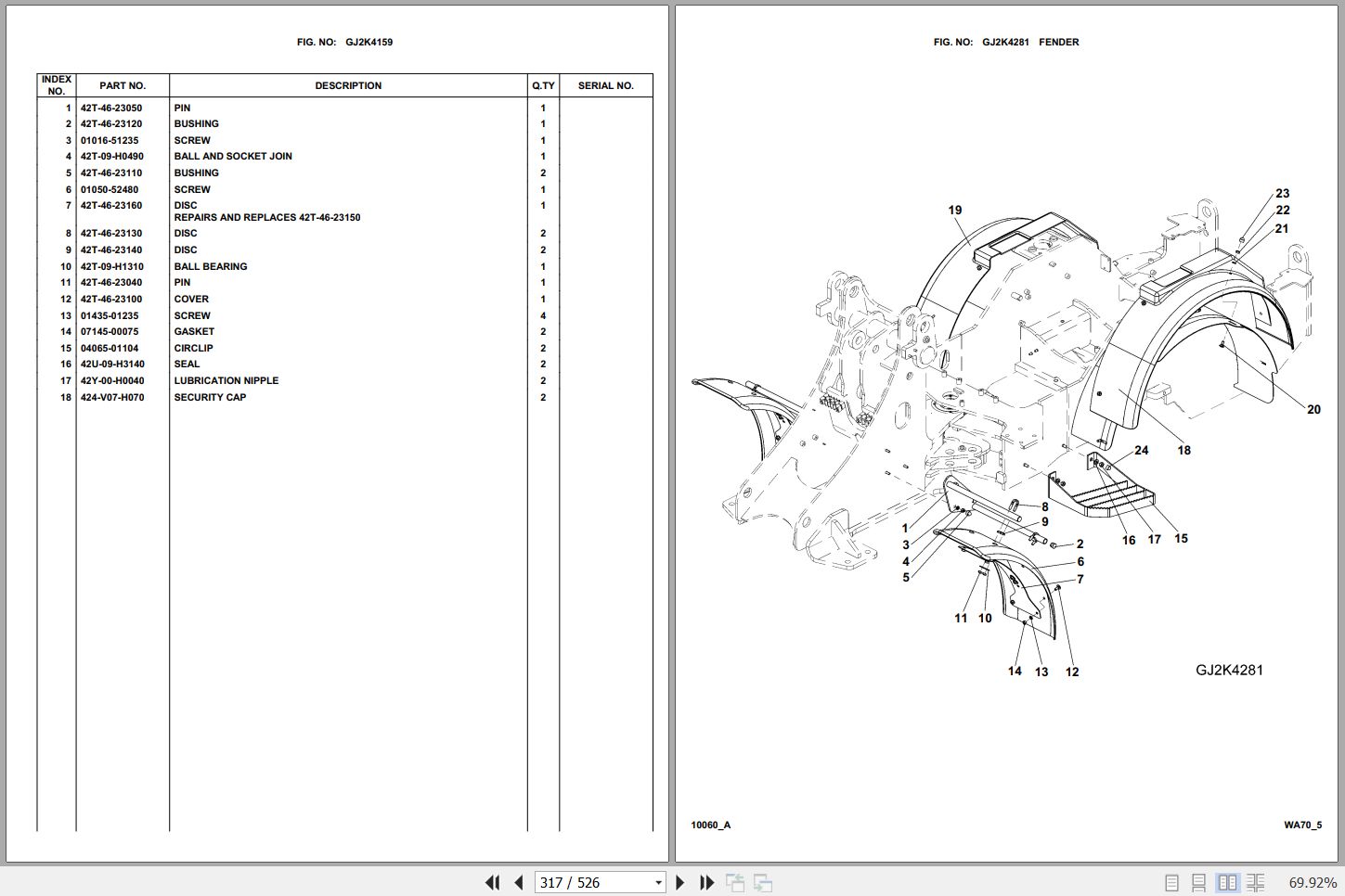 Komatsu WA70-5 H50051 Up Spare Parts Catalog