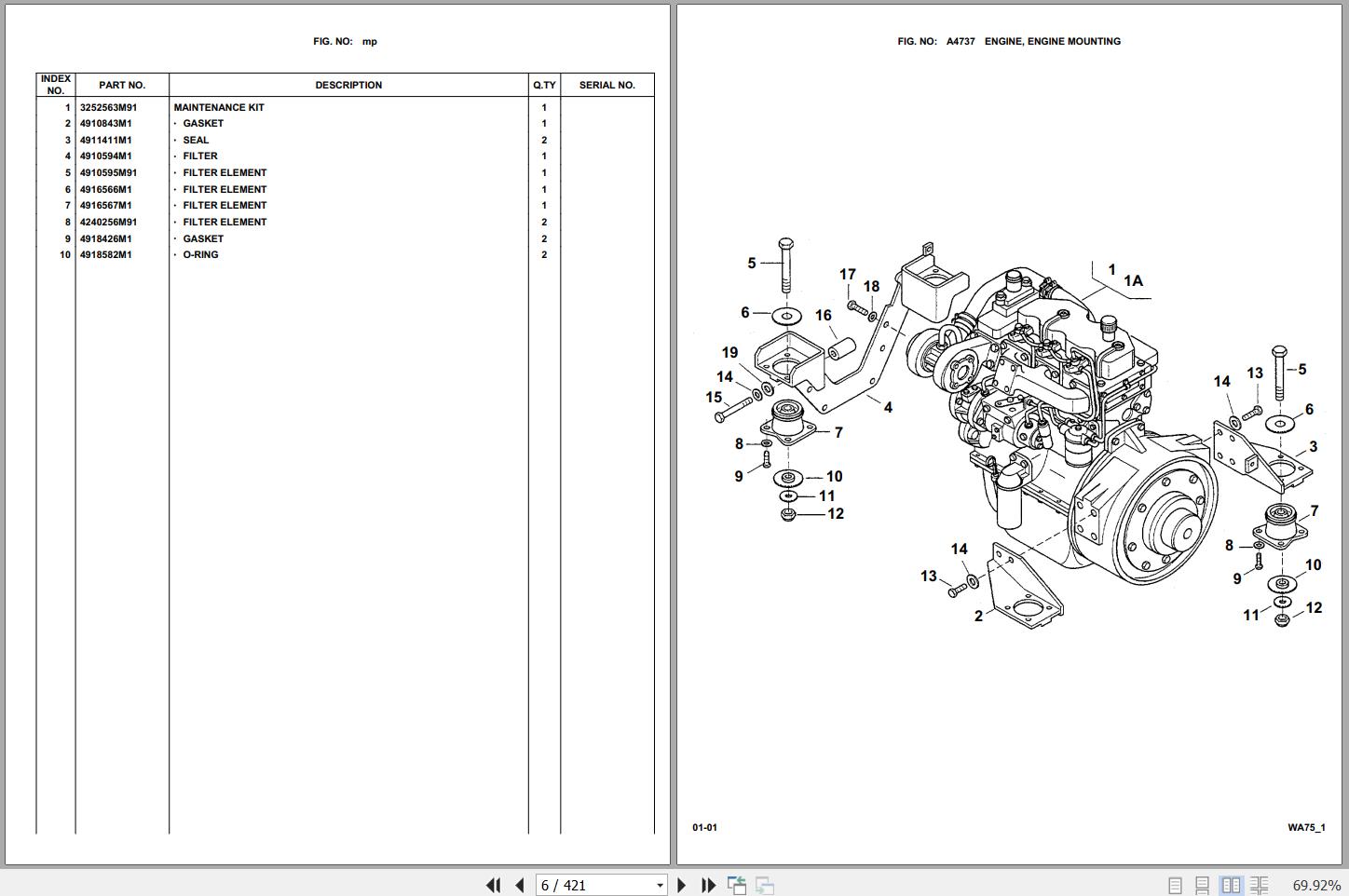 Komatsu WA75-1/15F 371320051 Up Spare Parts Catalog