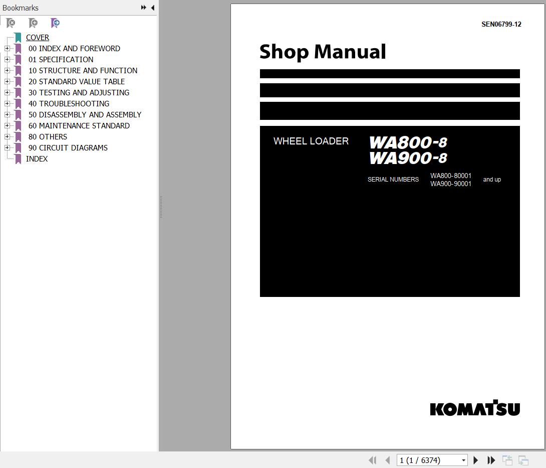 Komatsu WA800-8 WA900-8 Shop Manual SEN06799-12