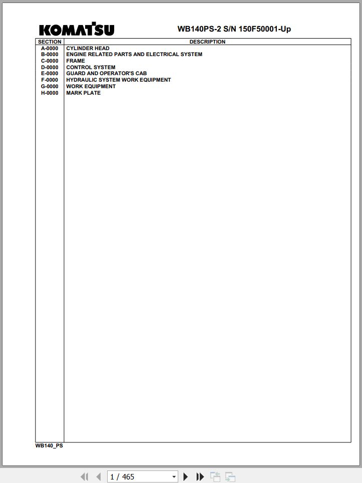 Komatsu WB140PS-2 140F50001 Up Spare Parts Catalog