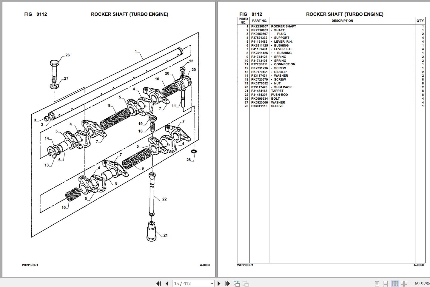 Komatsu WB91R-1 WB93R-1 0000007 Up Spare Parts Catalog