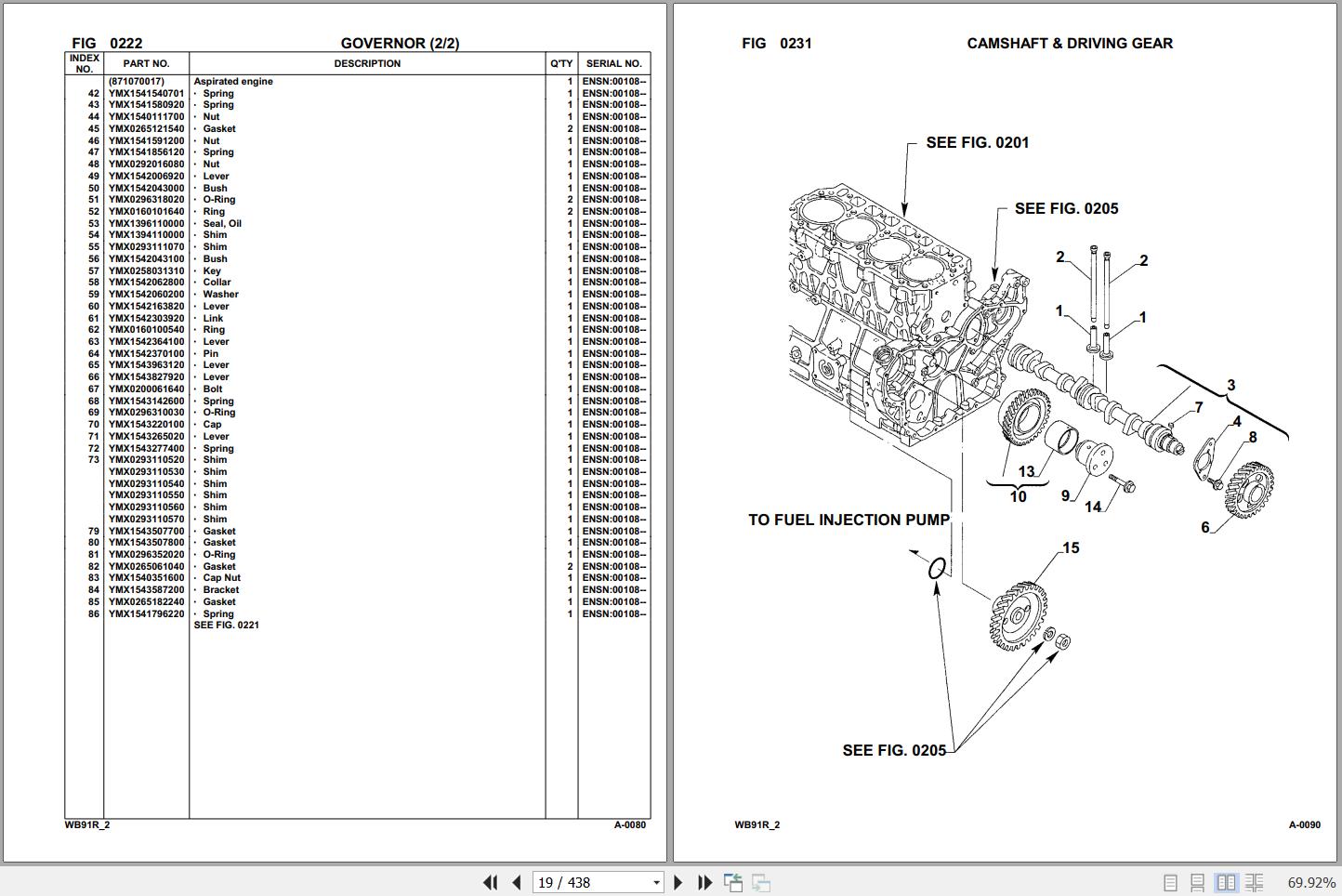 Komatsu WB91R-2 91F20001 Up Spare Parts Catalog