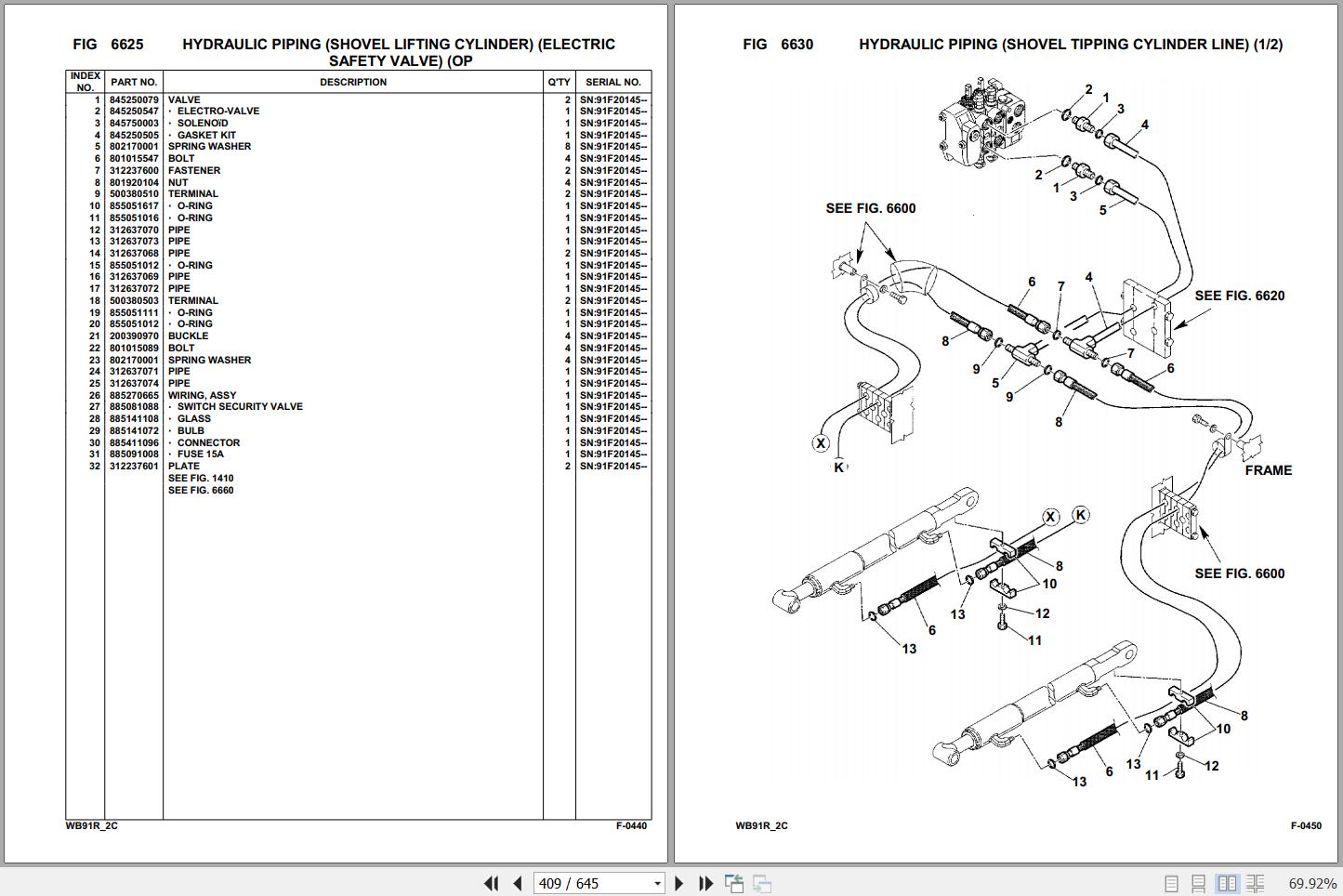 Komatsu WB91R-2 91F20145 Up Spare Parts Catalog