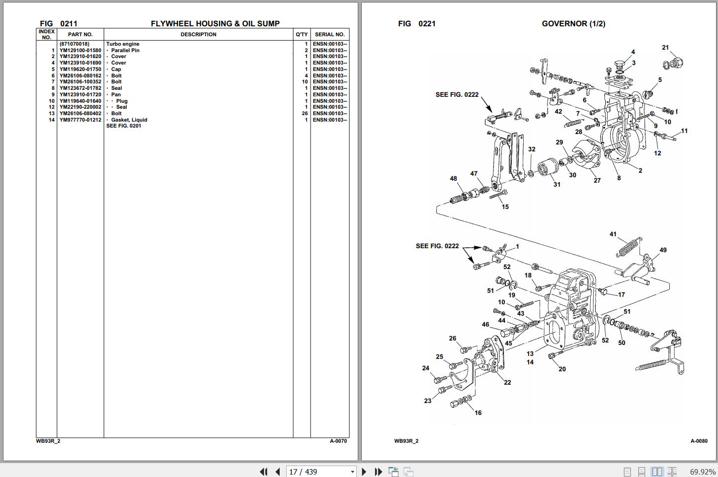 Komatsu WB93R-2 93F20001 Up Spare Parts Catalog