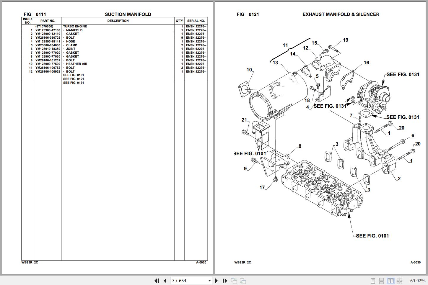 Komatsu WB93R-2 93F23453 Up Spare Parts Catalog