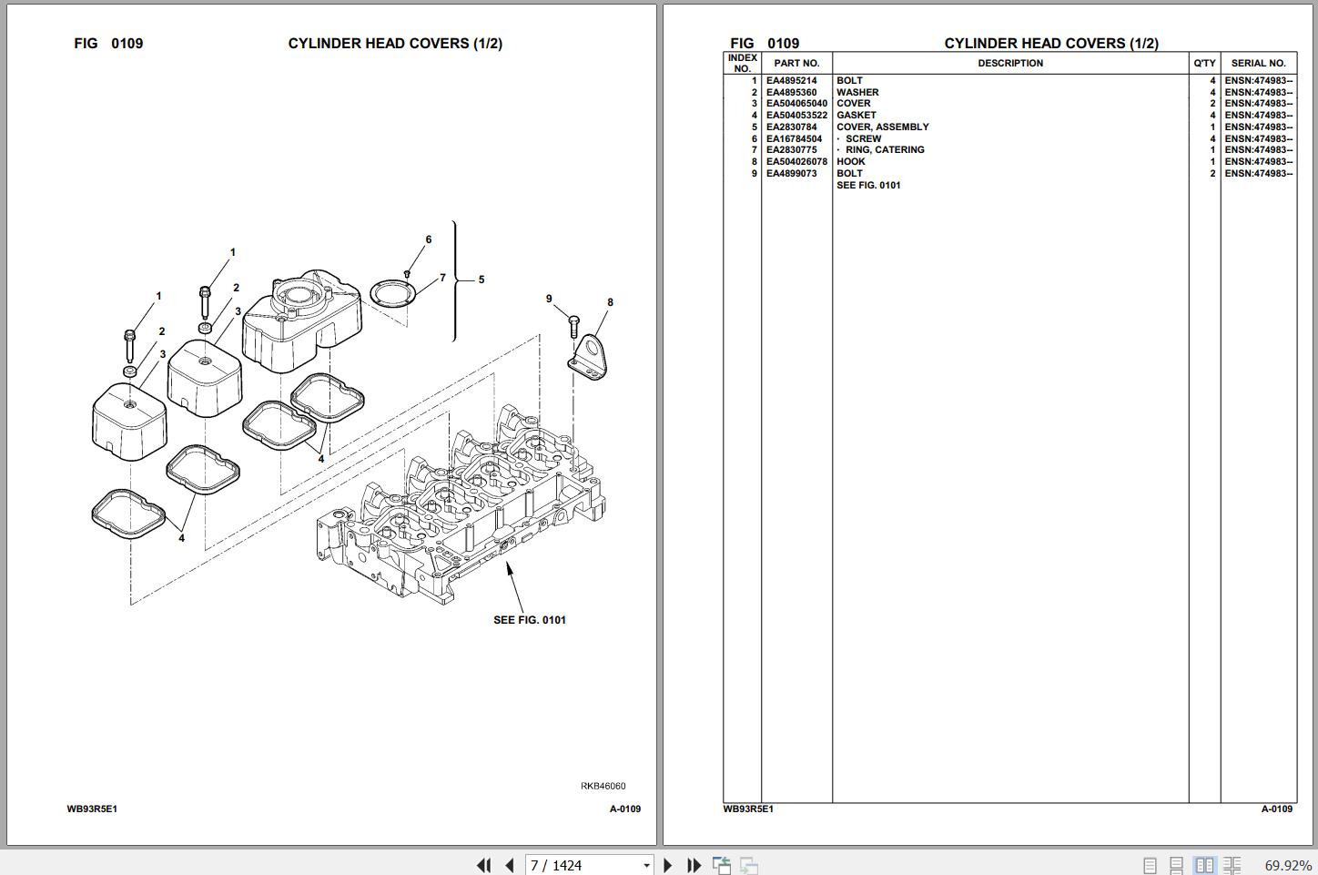 Komatsu WB93R-5E0 F61569 Up Spare Parts Catalog