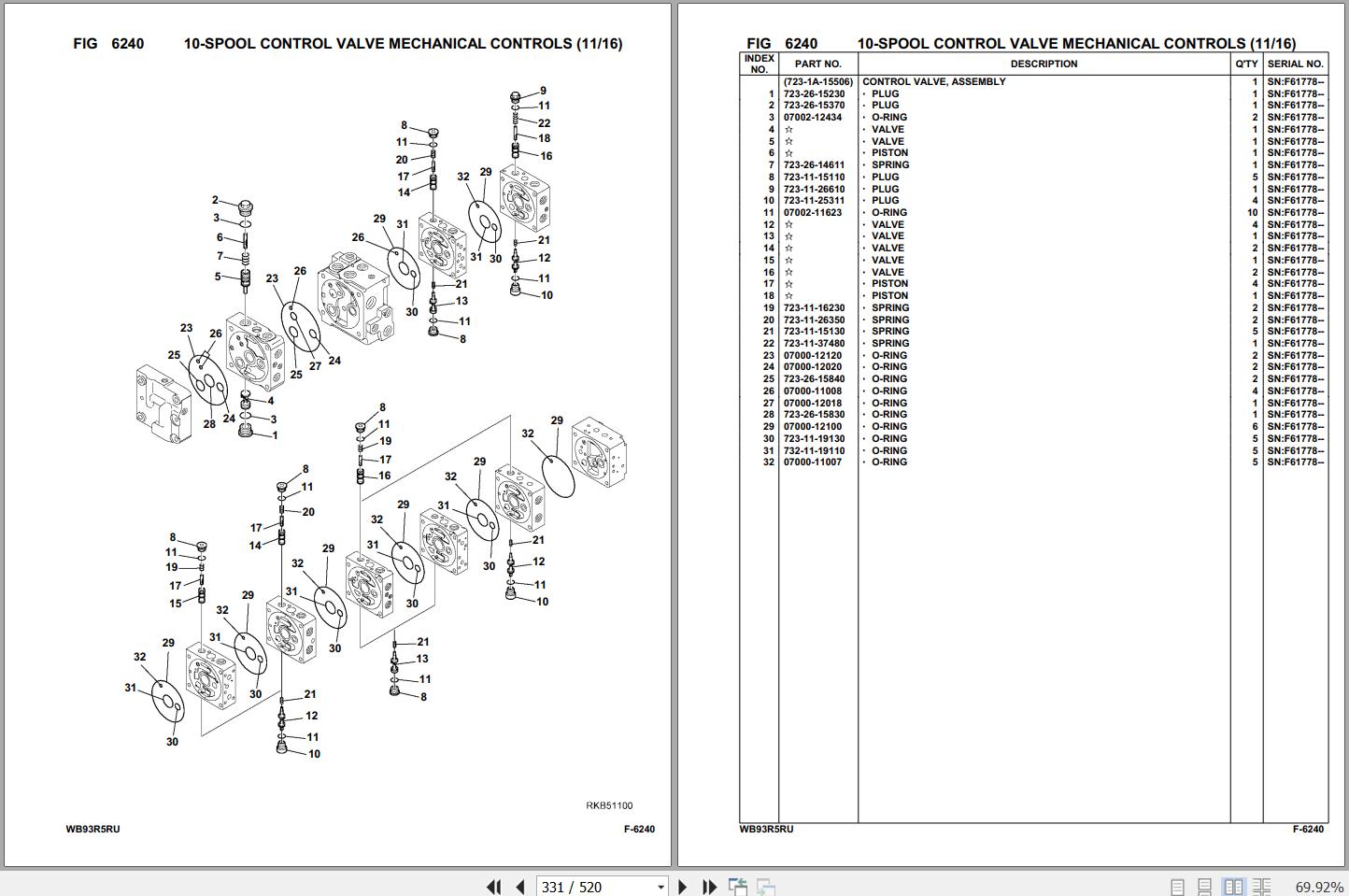 Komatsu WB93R-5E0 F61778-F61782 Spare Parts Catalog