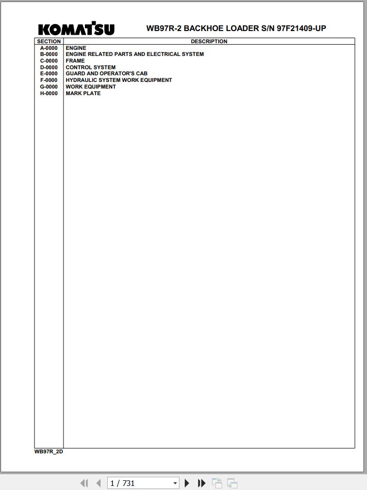 Komatsu WB97R-2 97F21409 Up Spare Parts Catalog
