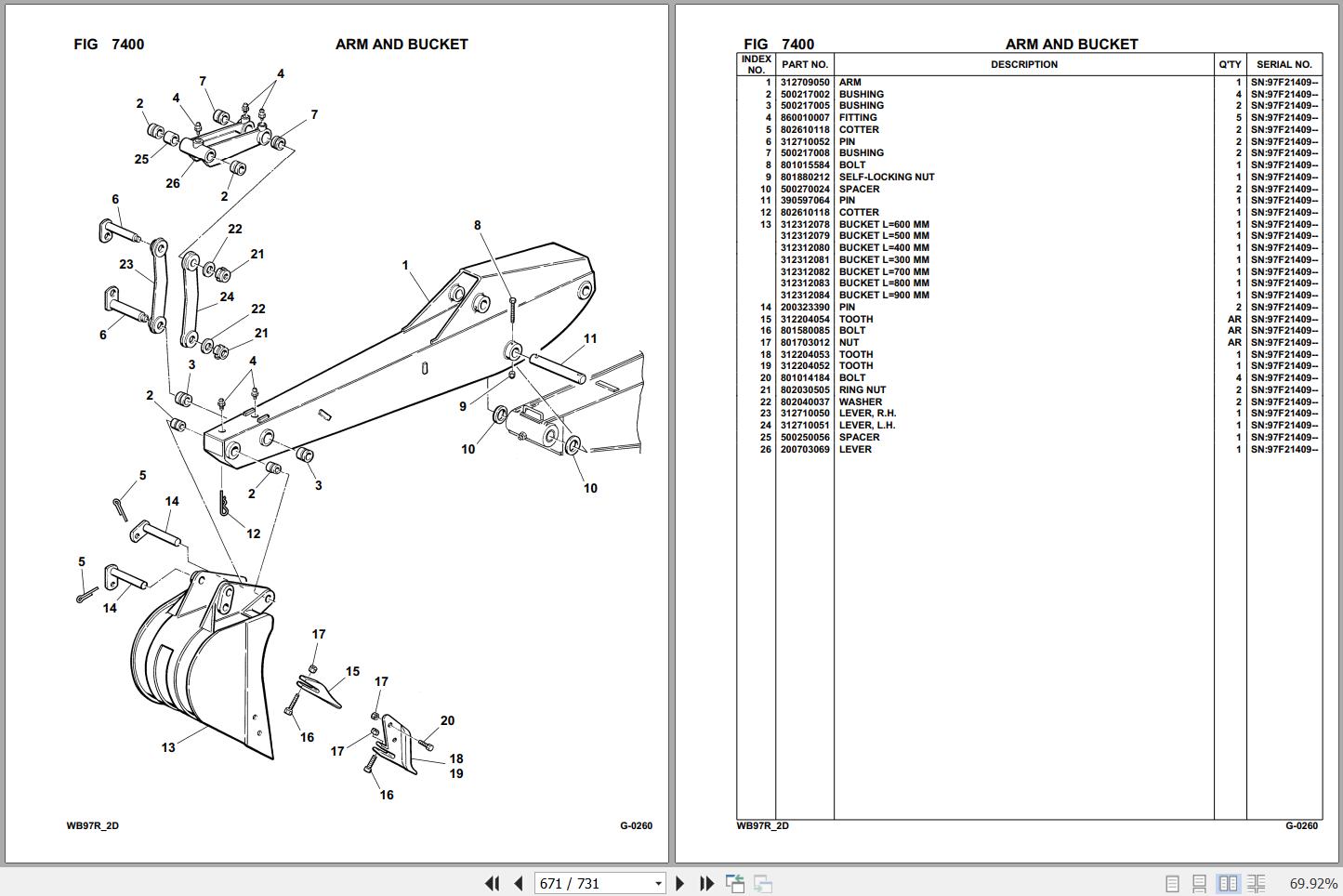 The Bookmarks of Komatsu WB97R-2 97F21409 Up Spare Parts Catalog: