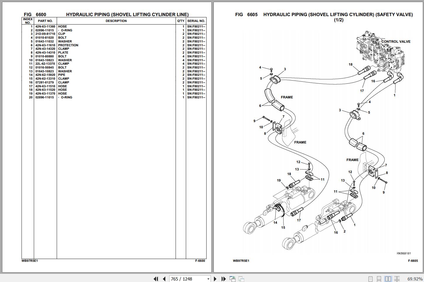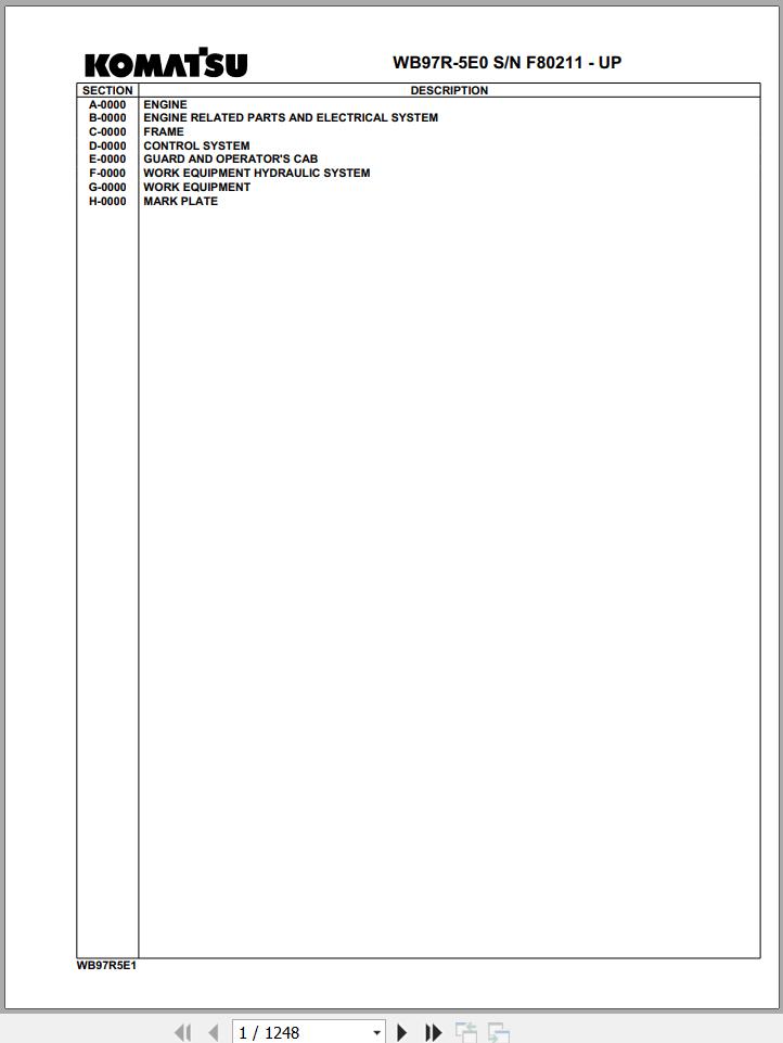 Komatsu WB97R-5E0 F80211 Up Spare Parts Catalog