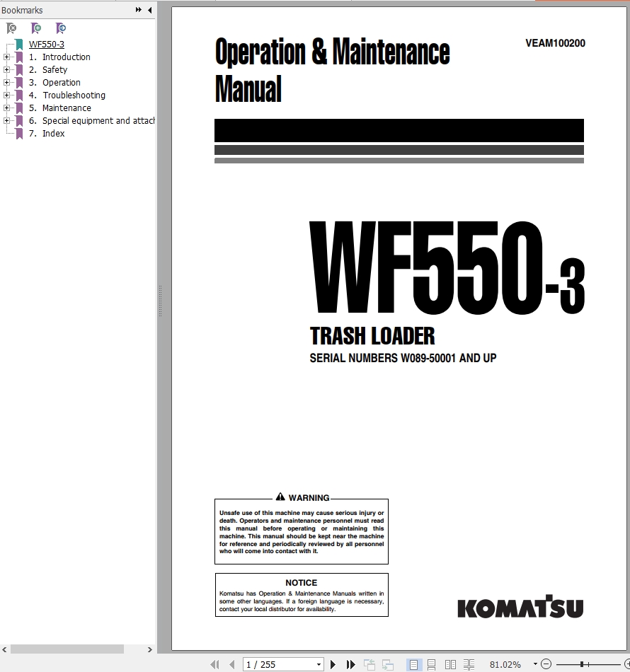Komatsu WF550-3 Operation & Maintenance Manual VEAM100200