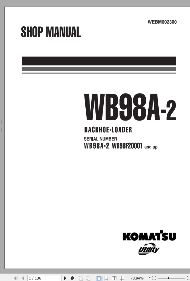 Komatsu WWB98A-2 Shop Manual WEBM002300