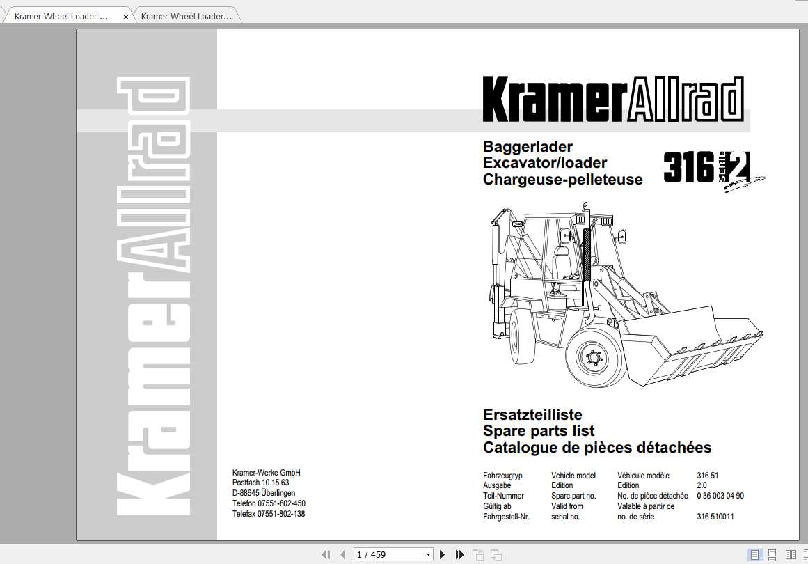 Kramer 316 Series 2 316-51 0001 & up Parts List