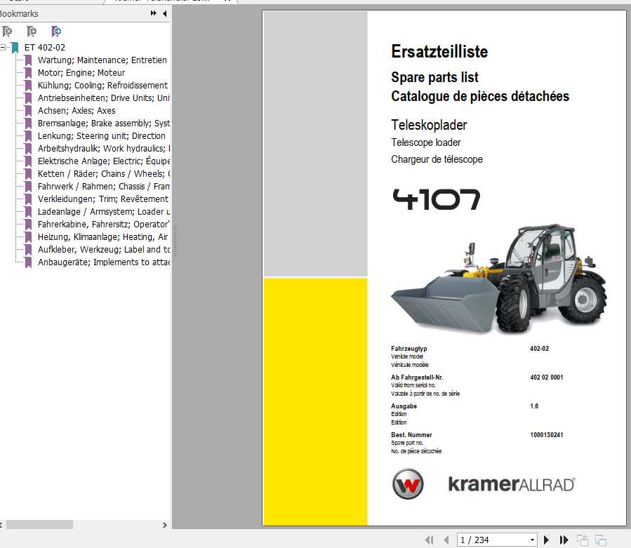 Kramer 4107 402-02 Parts Catalog 1000150241