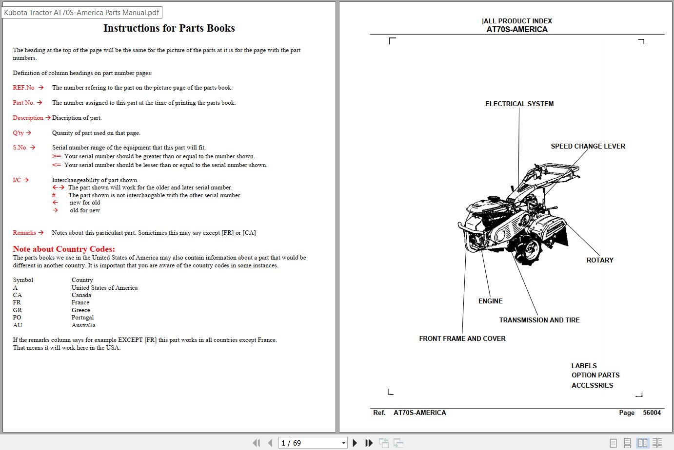 Kubota AT70S-America Parts Catalog PDF