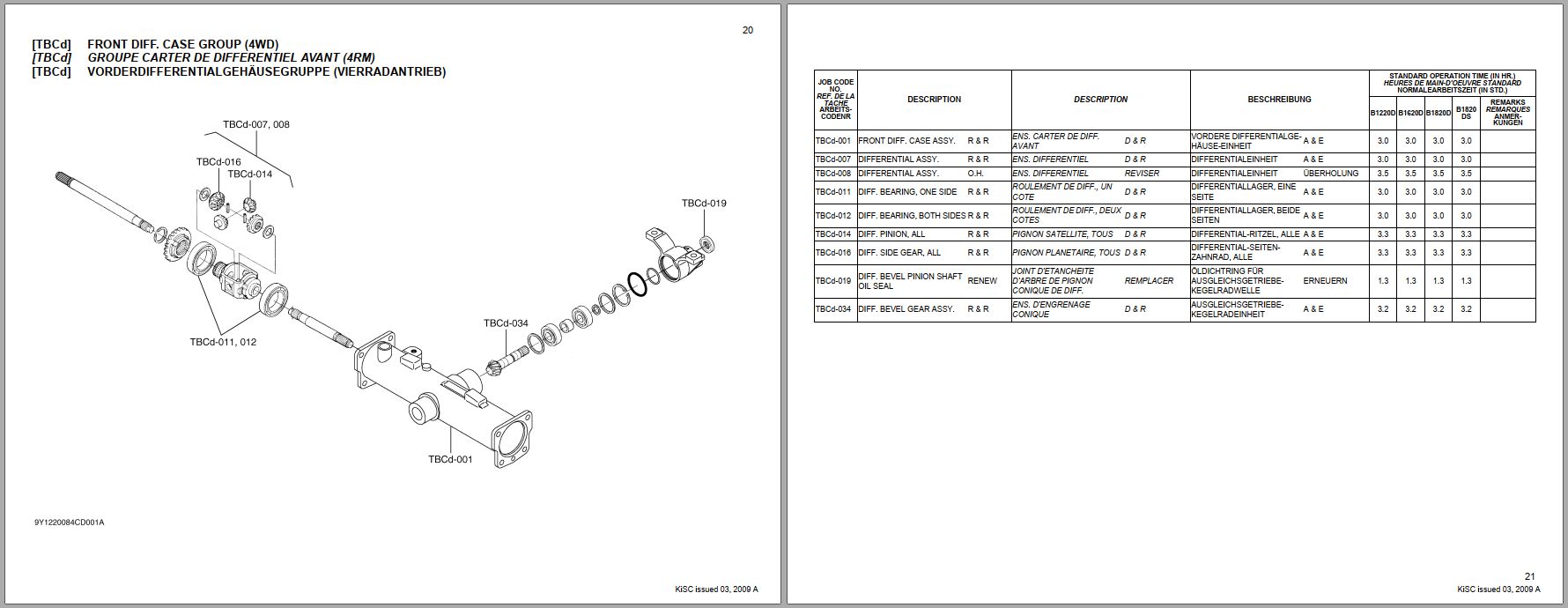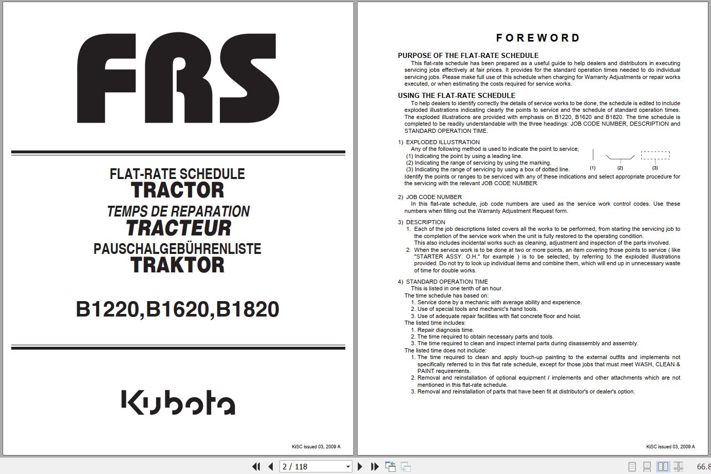 Kubota B1220 B1620 B1820 Flat-Rate Schedule 9Y112-00840 2009 EN DE FR PDF