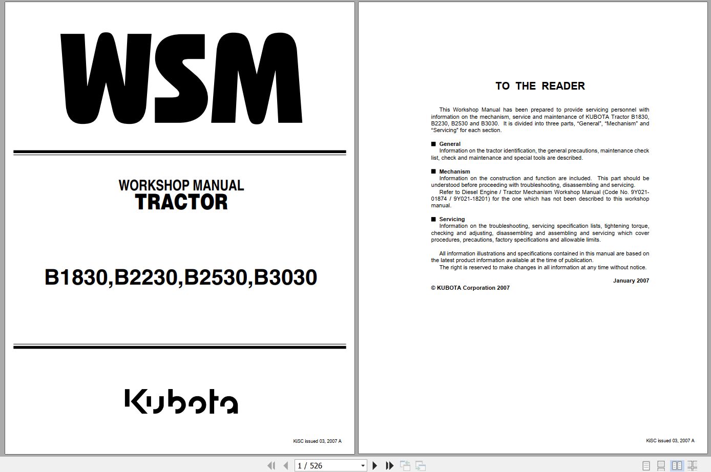 Kubota B1830 B2230 B2530 B3030 Workshop Manual 9Y111-00031 2007 PDF