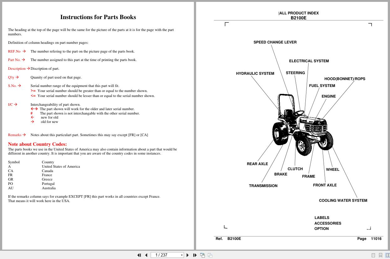 Kubota B2100E Parts Catalog PDF
