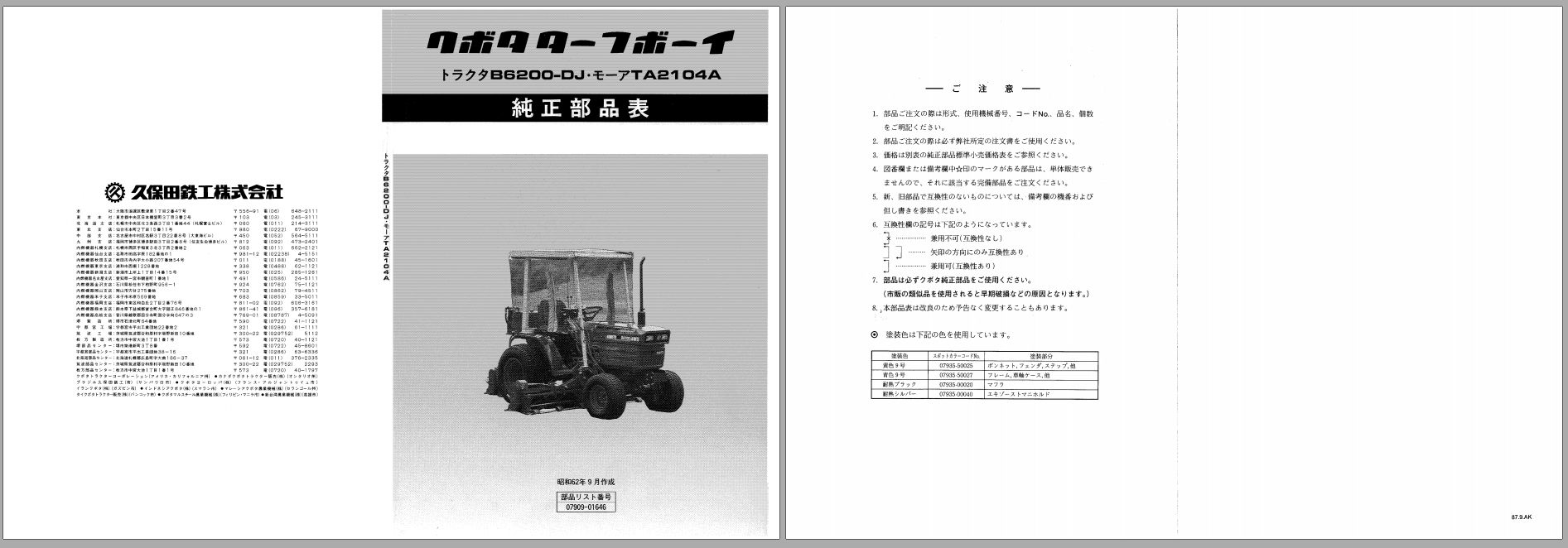 Kubota B6200-DJ TA21004A Parts Catalog 07909-01646 JP PDF