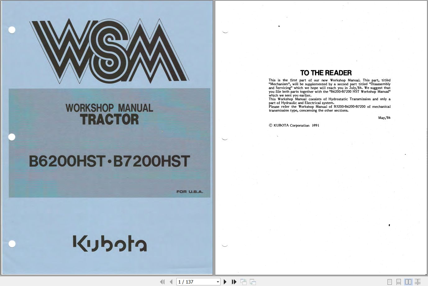 Kubota B6200HST B7200HST Workshop Manual 97897-10713 PDF