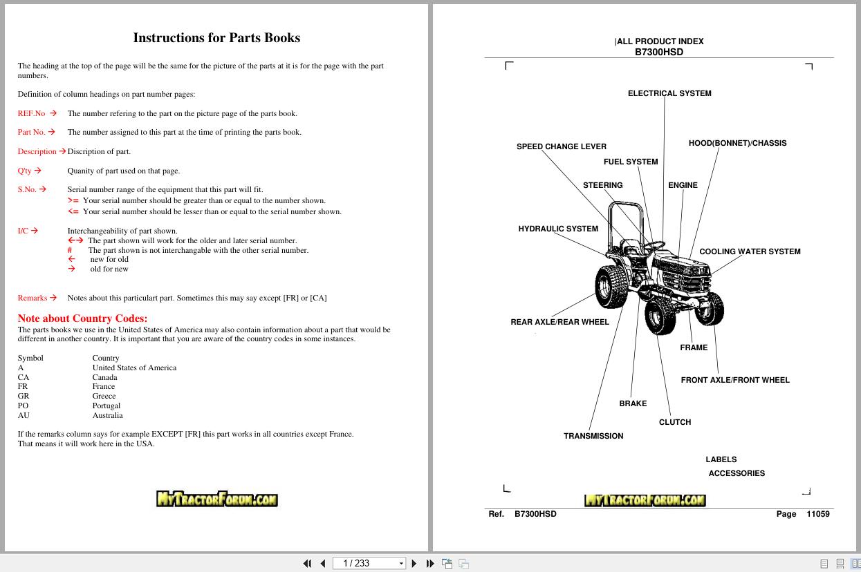 Kubota B7300HSD Parts Catalog PDF