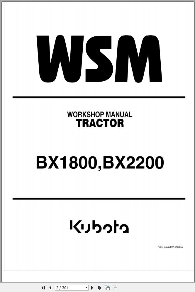 Kubota BX1800 Workshop Manual
