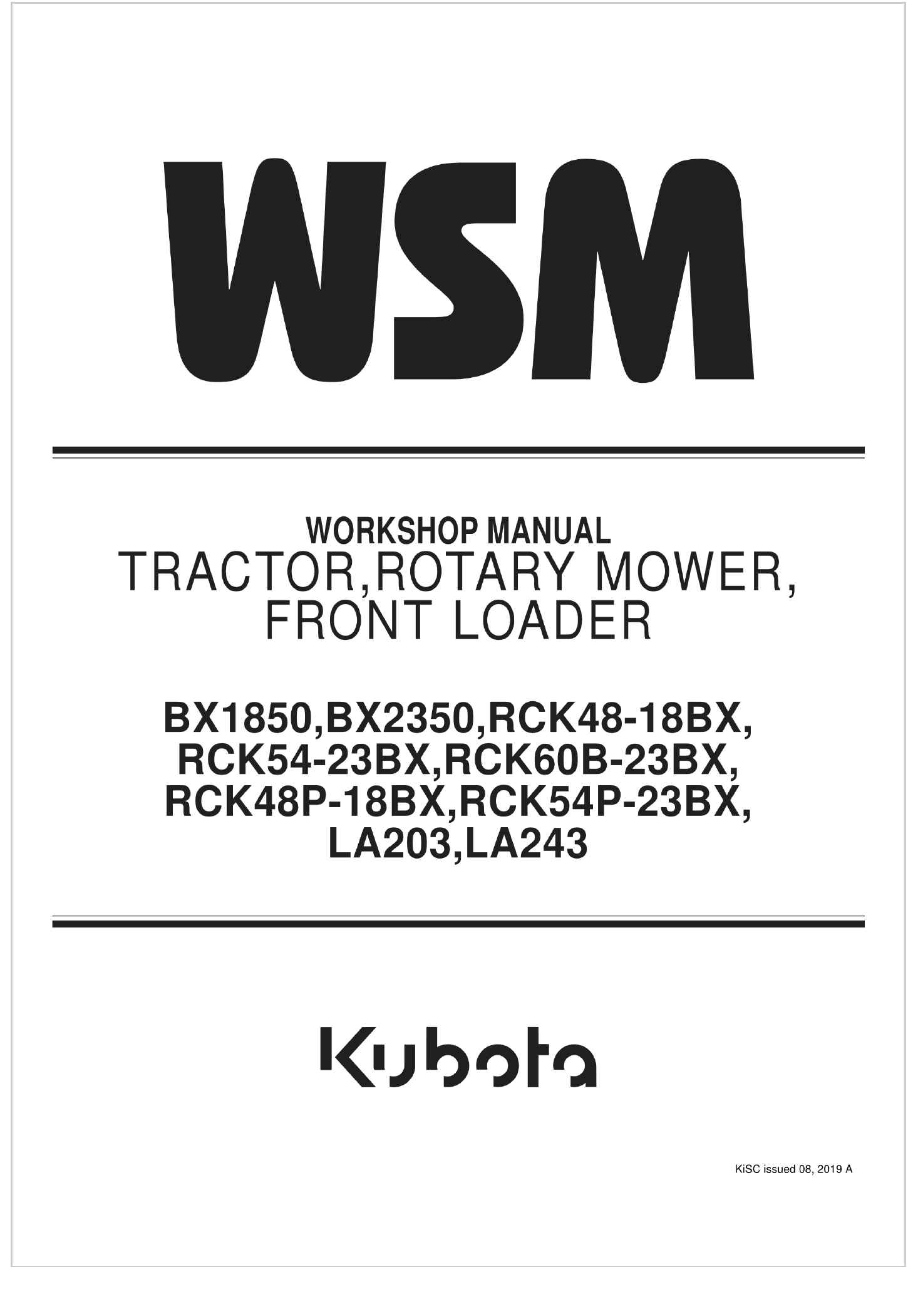 Kubota BX1850 Workshop Manual
