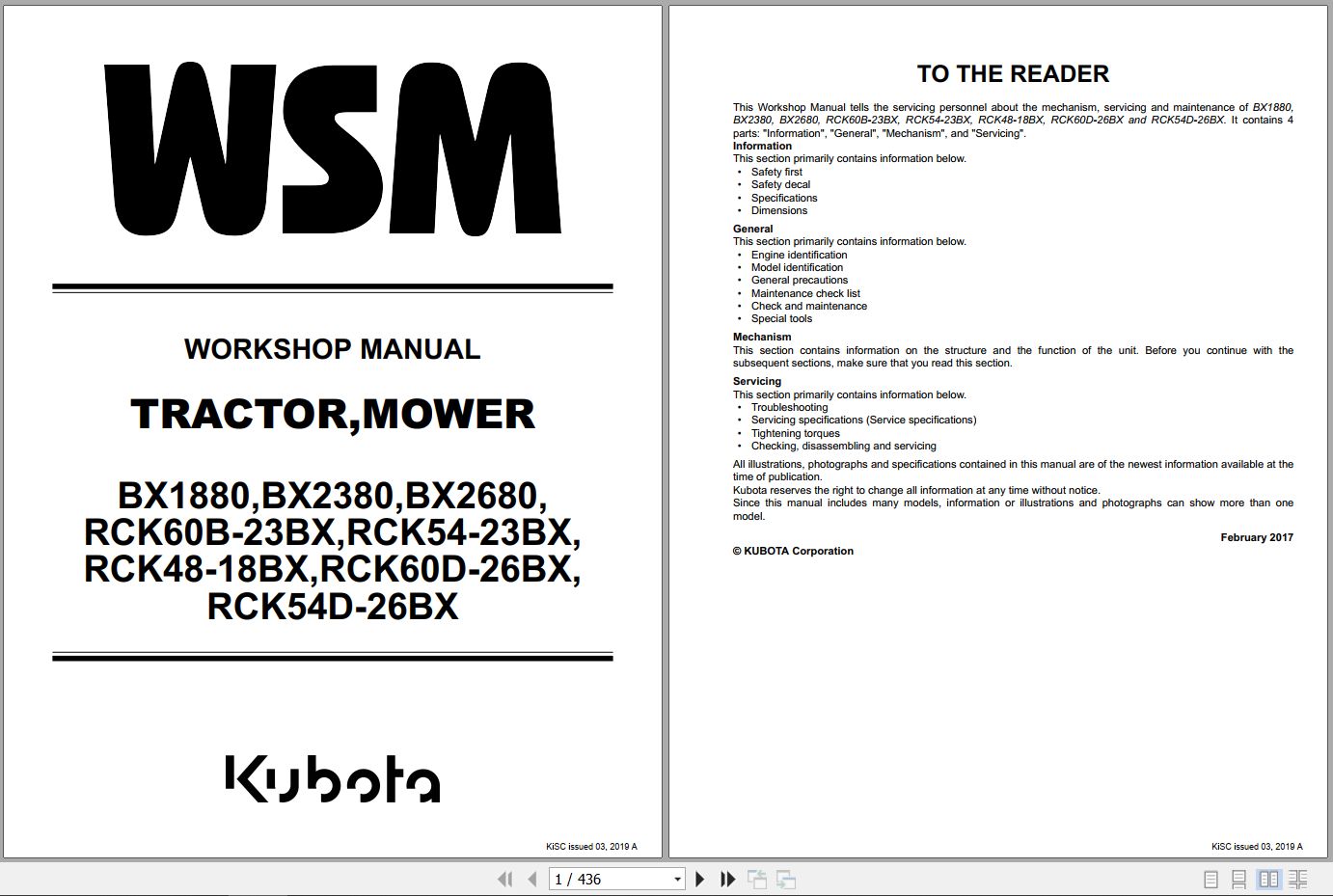 Kubota BX1880 to RCK54D-26BX Workshop Manual 9Y111-16342 2019 PDF