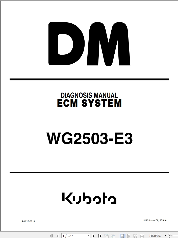 Kubota ECM Diagnostic WG2503-E3 Diagnosis Manual F-1027-0219