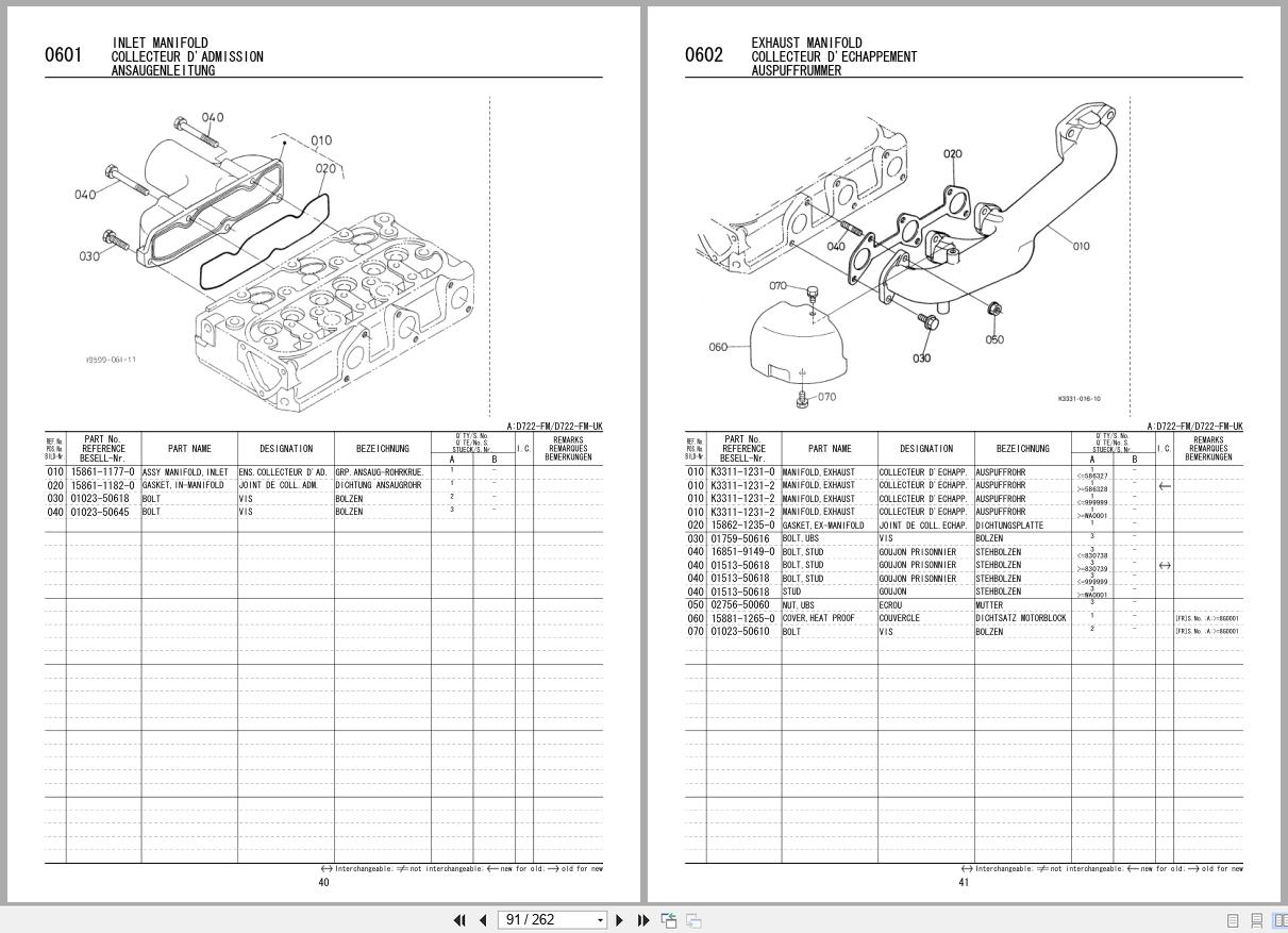 Kubota F1900 F1900E Parts Catalog 97898-40923 2008 EN DE FR PDF