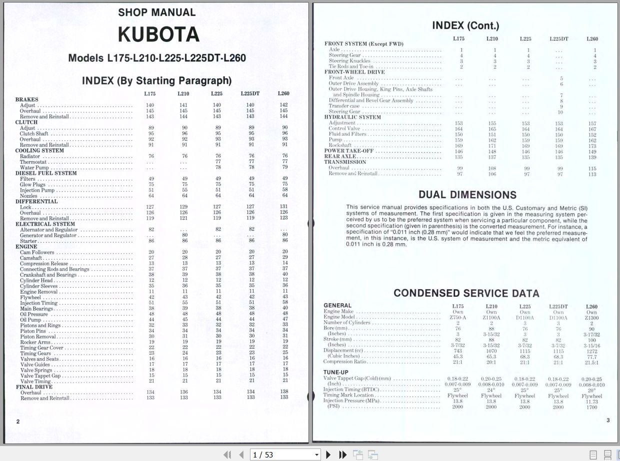 Machine Model: Kubota L175 L210 L225 L225DT L260 Tractor