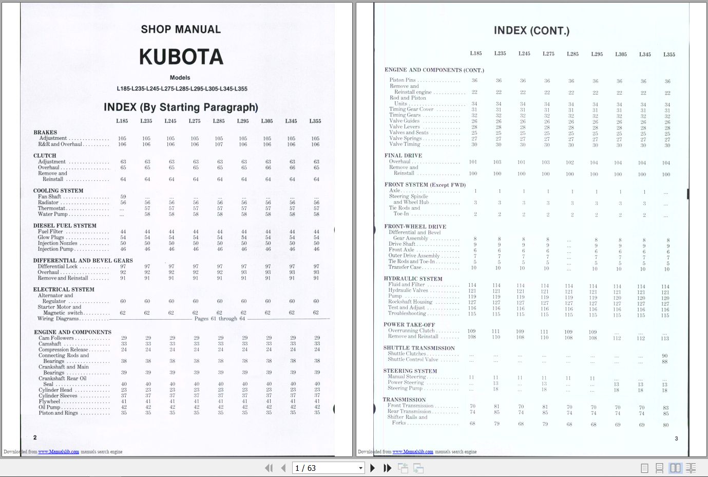 Machine Model: Kubota L185 L235 L245 L275 L285 L295 L305 L345 L355 Tractor