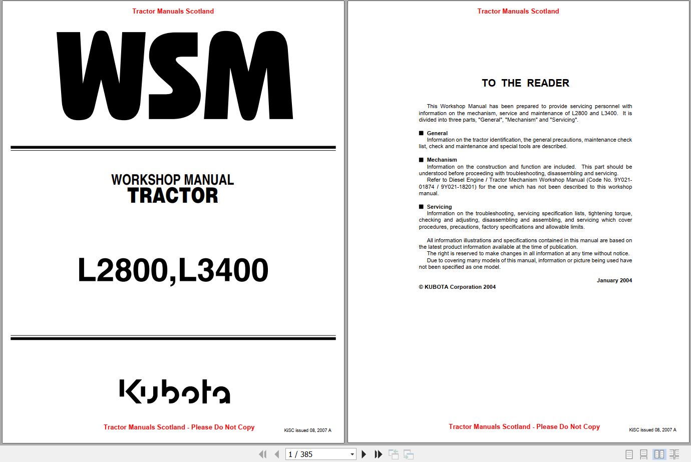 Kubota L2800 L3400 Workshop Manual 9Y011-13193 2007 PDF