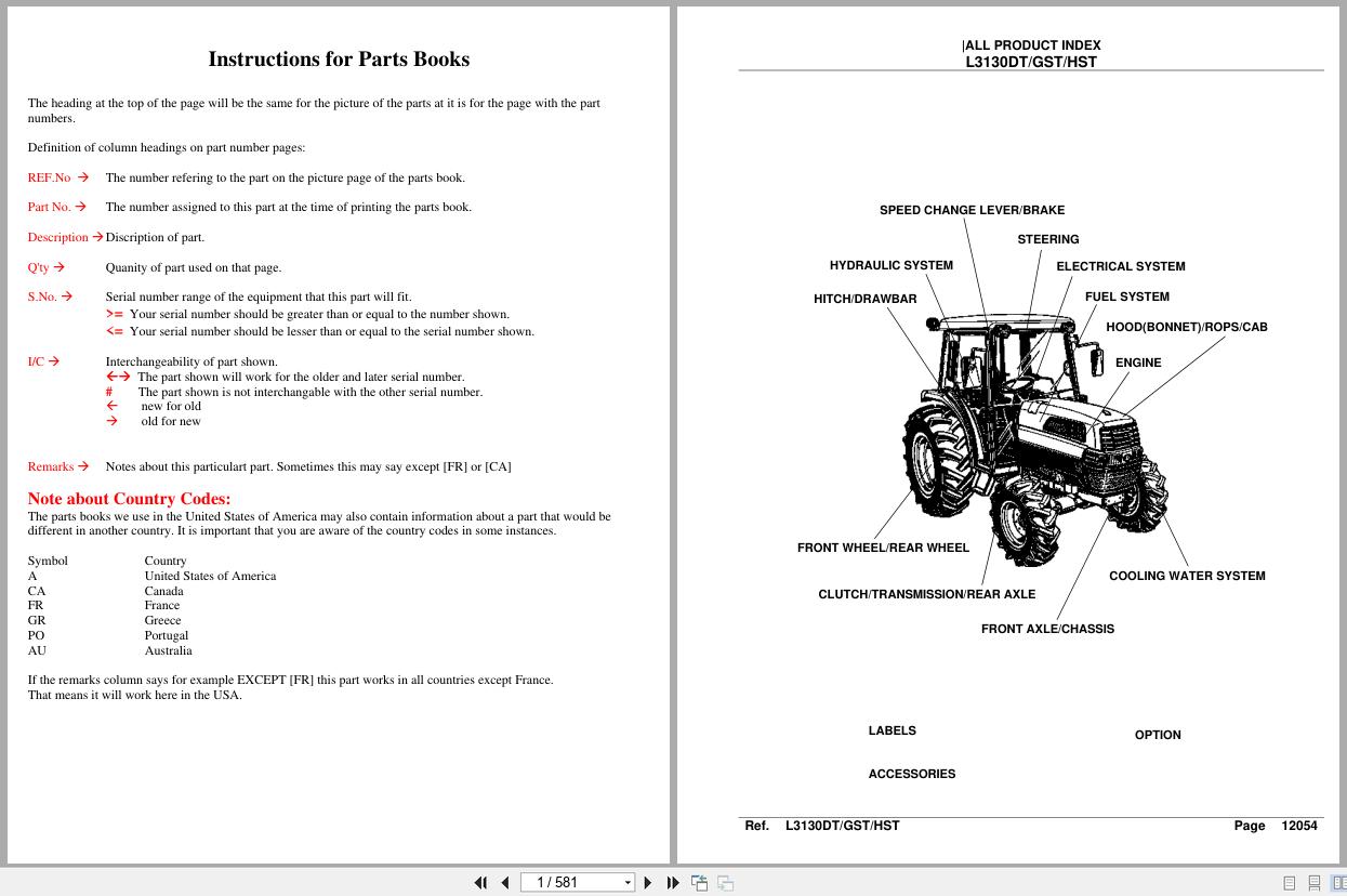 Kubota L3130DT L3130GST L3130HST Parts Catalog PDF