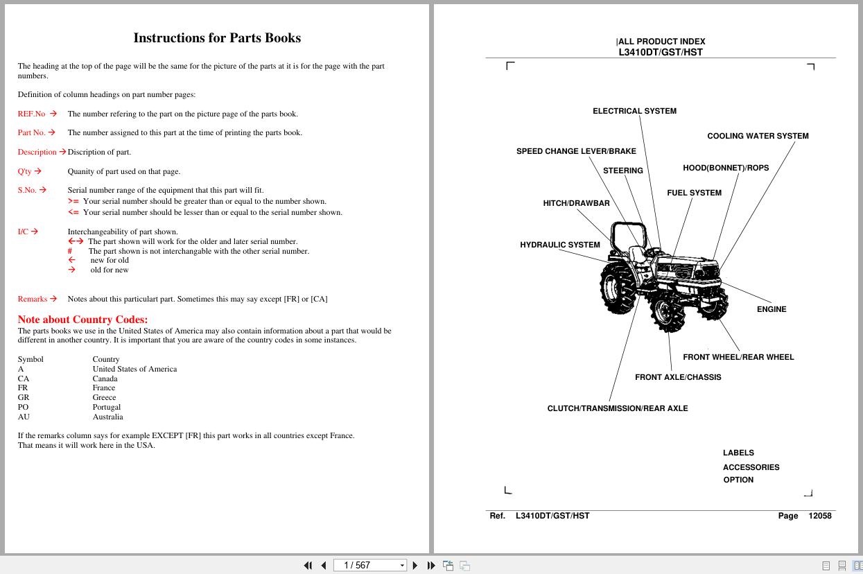 Kubota L3410DT L3410GST L3410HST Parts Catalog PDF