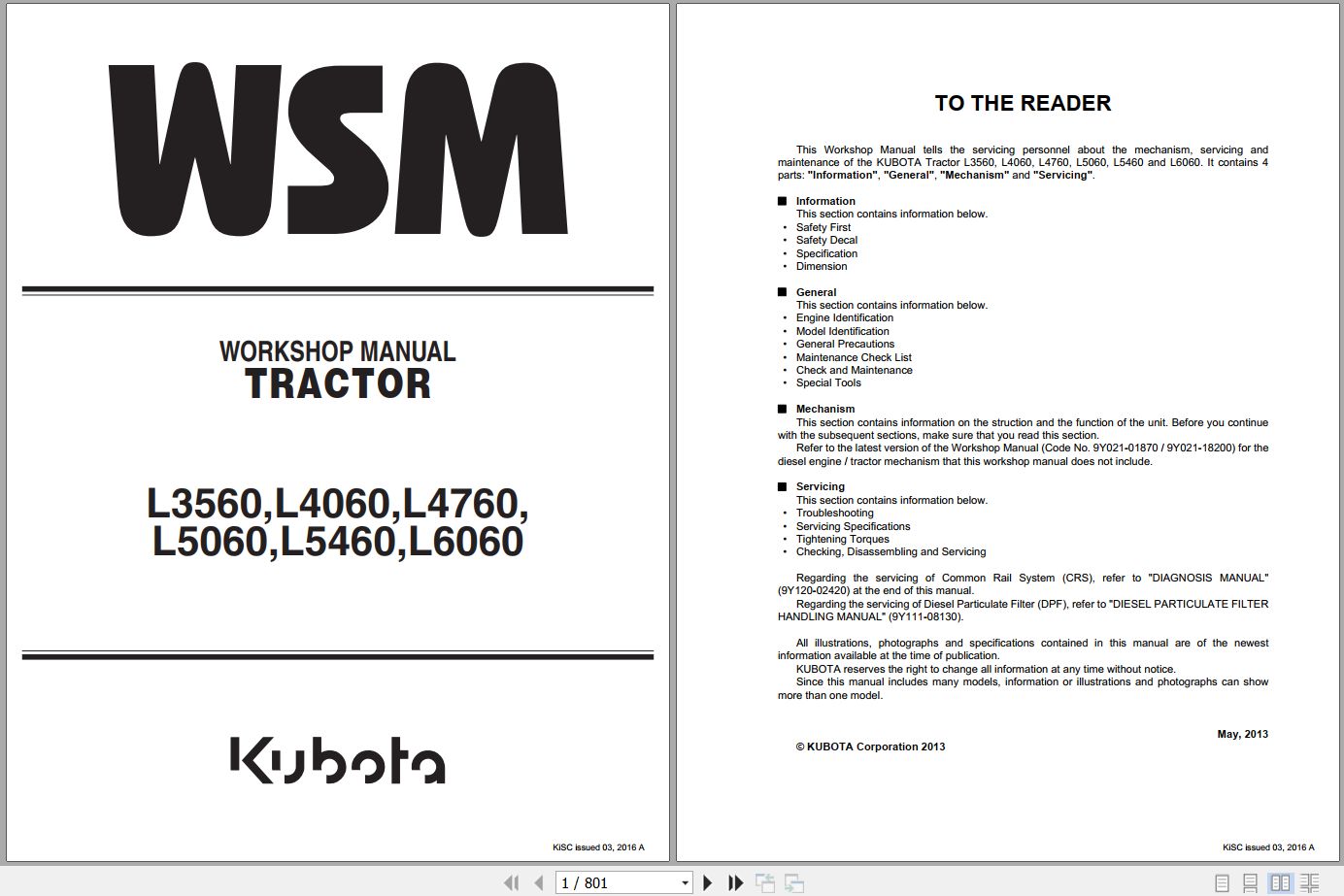 Kubota L3560 to L6060 Workshop Manual 9Y111-08242 2016 PDF