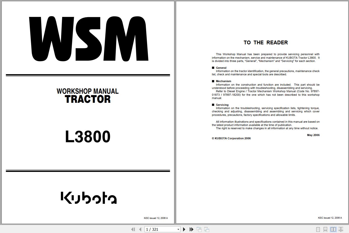 Kubota L3800 Workshop Manual 9Y011-13601 2006 PDF